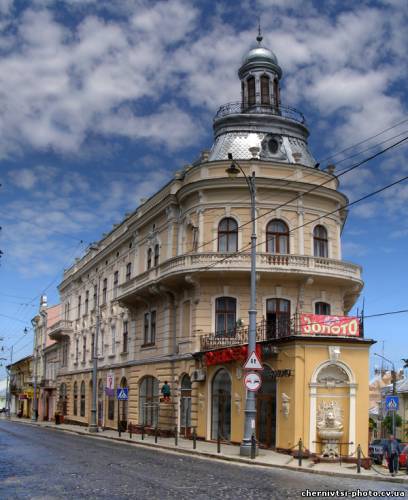 | Маємо ратушу, театр, університет і масу храмів. Для повної краси місту не вистачає... Правильно: моря! Ну, і порта. І кораблів, так. Прут настільки мілкий, де тут з'явитися лайнерам? А проте корабель у Чернівцях є. І який! Більше ста років пливе, розрізаючи хвилі двох вулиць (одна вгору, друга вниз), носом на костел, кормою на вокзал десь далеко внизу. Море машин (куточок на перетині вулиць Головної та Шолом-Алейхема надзвичайно жвавий), хвилі людей, білі барашки відомої всім чернівчанам легенди...